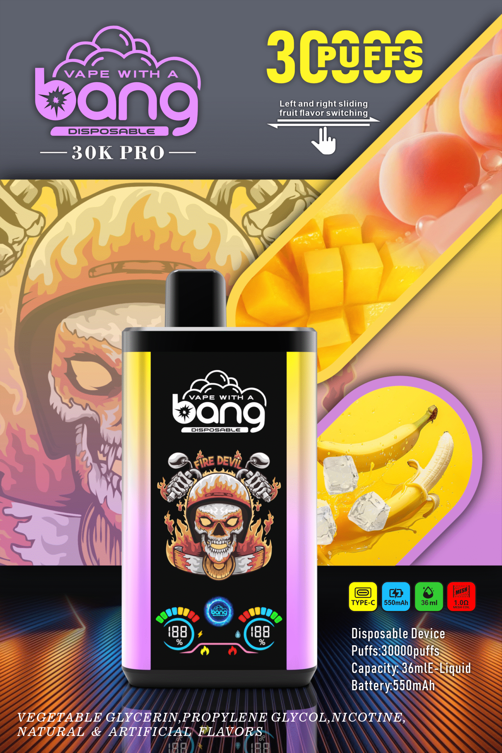Bang 30000 Puffs PRO Rechargeable Wholesale Disposable Vape LED Screen Low Nicotine 0% 2% 3% 5% 16 Double Flavors 30K Big Puffs 2025 New