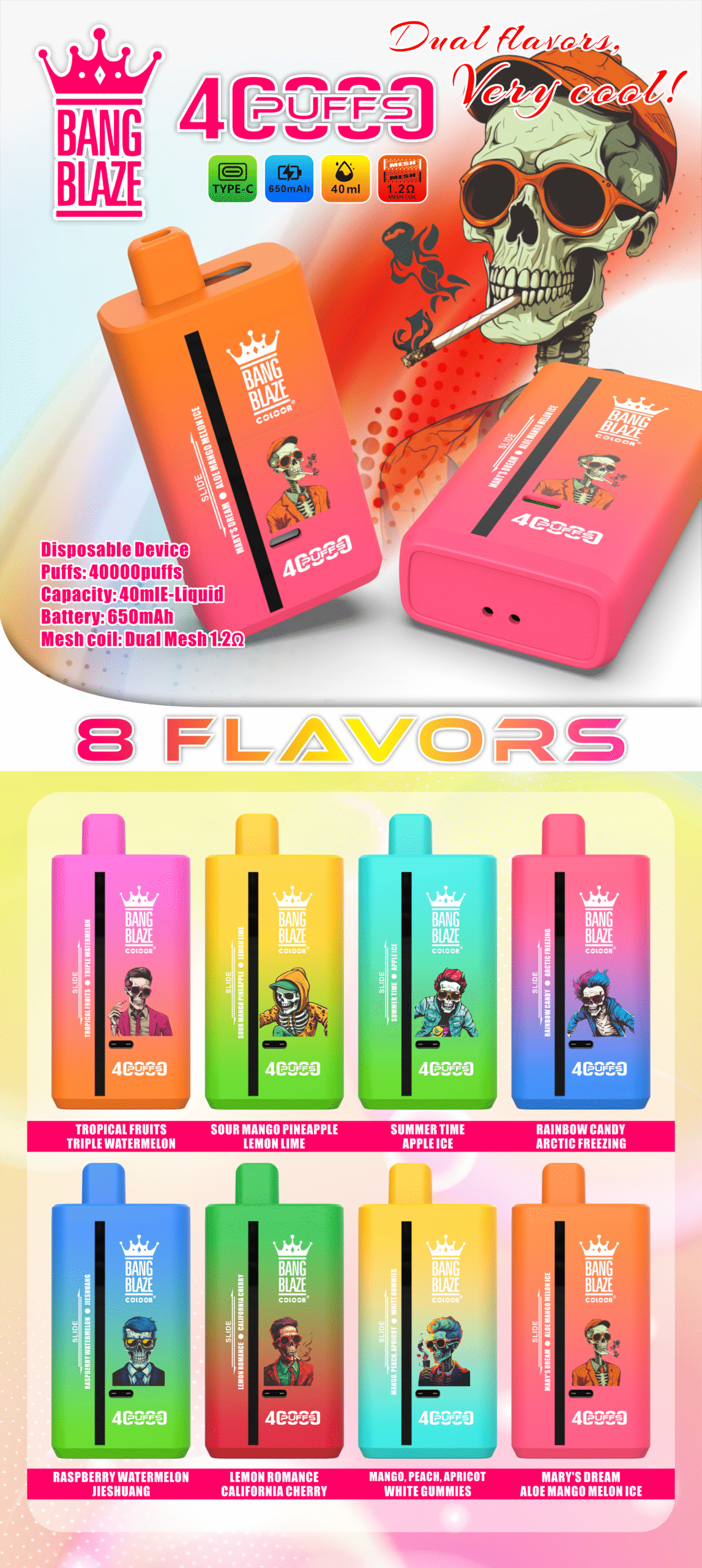 40,000 Puffs: You can vape for a long time.