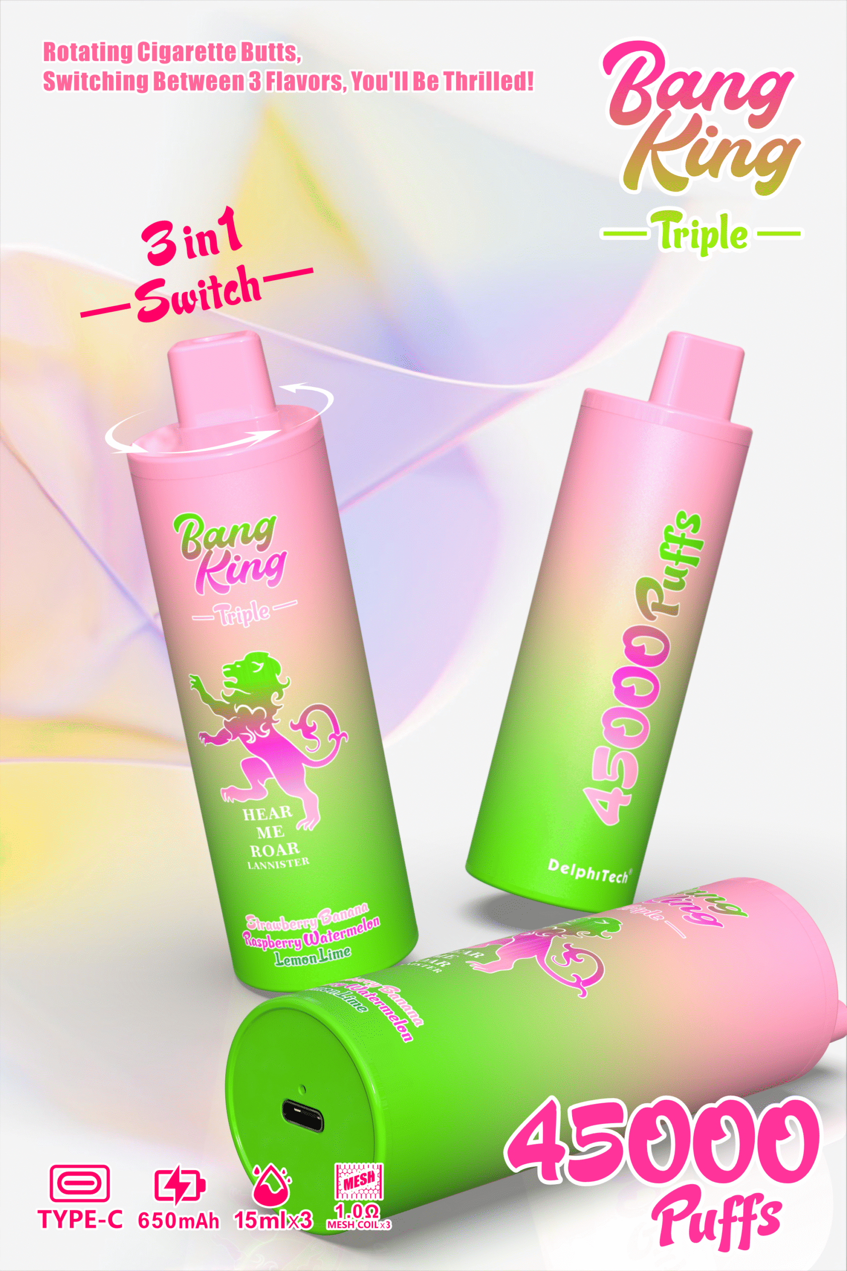 BANGKING 45000 Puffs BK45 Rechargeable Vape 650mAh Battery 15ml x 3 Liquid 10 Flavors Nicotine Options 0% 2% 3% 5%