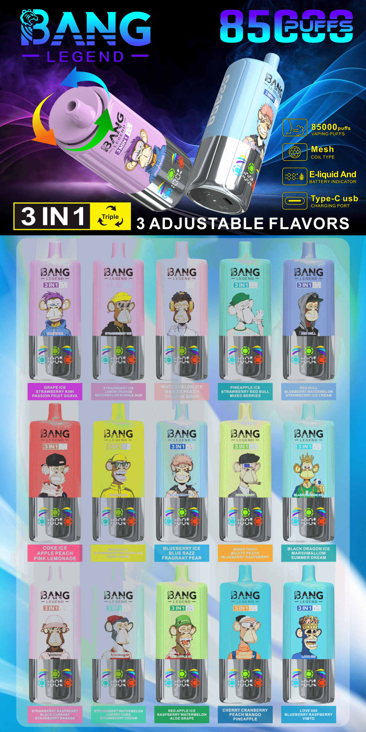 The Bang 85000 DSK058 Disposable Vape redefines expectations with its massive puff count, customizable nicotine strengths, diverse flavors, and modern design. Perfect for personal use or wholesale purchase, it’s a device that guarantees satisfaction and reliability.